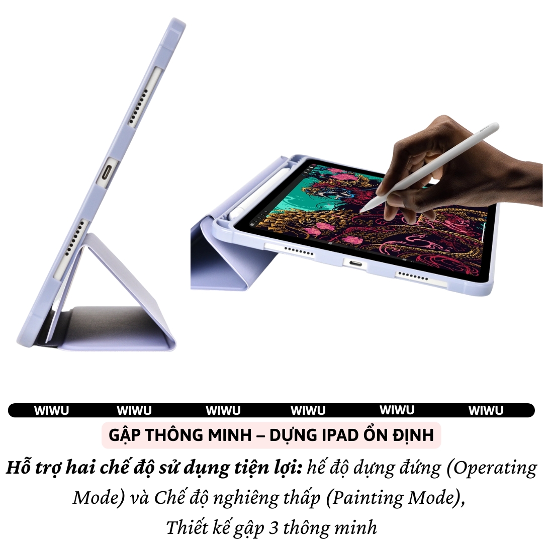 Case/ Ốp/Bao da IPAD WIWU Classic II Cho IPAD Pro 11 inch M4 2024 Air 5/Air 4 10.9/ Pro 11 inch/Gen 9 8 7th 10.2/Gen 10 - Viền Silicon, Có Khay Đựng Bút, Bao Da Thông Minh, tự động tắt mở màn hình - Hàng nhập khẩu