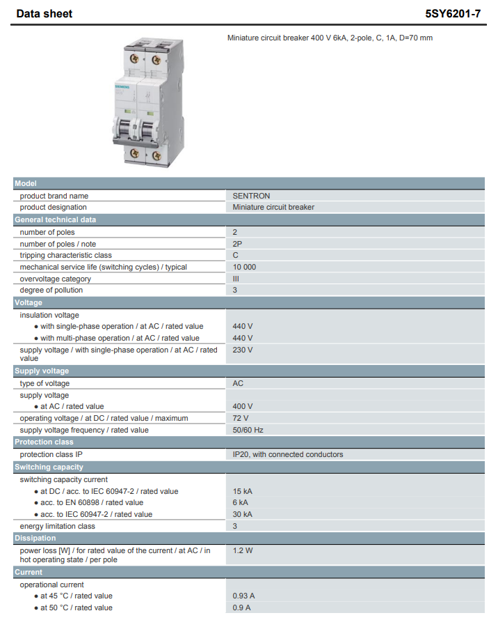 - Cầu Dao Dạng Tép / MCB Siemens 5SY6201-7 | Hàng Chính Hãng