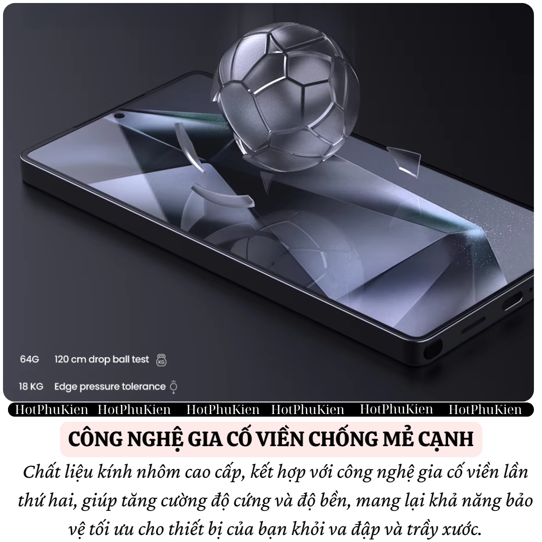 - Tính năng bổ sung: Bảo vệ toàn diện cạnh màn hình, chống nứt khi va đập mạnh.