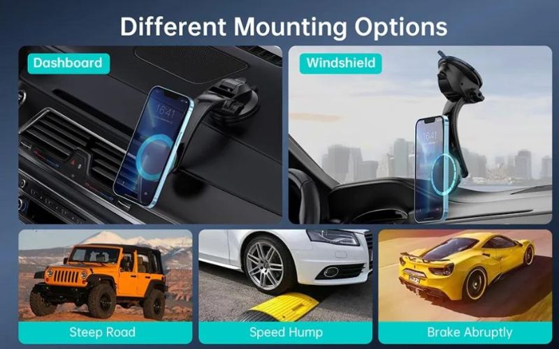 – Giá đỡ điện thoại mag-safe Choetech AT0005 nhờ có giác hút với kẹp nén hỗ trợ giảm áp suất, chiếc giá đặc biệt này có thể gắn một cách chắn chắn trên kính trước xe hoặc tapto, cho dù xe ô tô của bạn đang di chuyển tốc độ cao hoặc đi qua các mặt đường nhiều rung lắc. Nhờ đó thiết bị của bạn vẫn sẽ được cố định vị trí một cách an toàn.