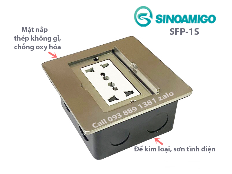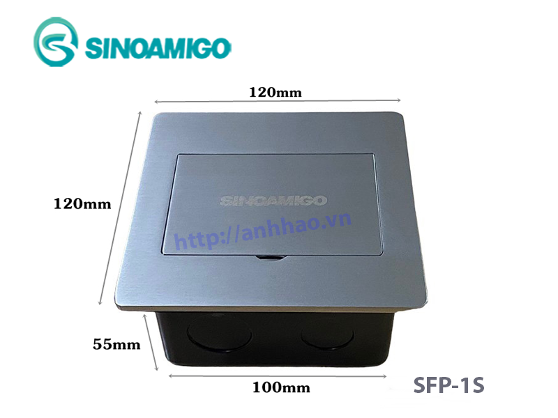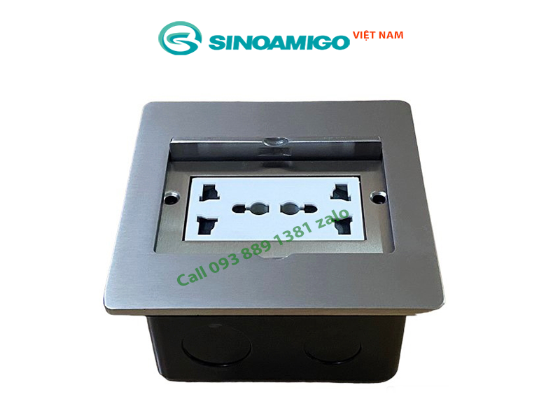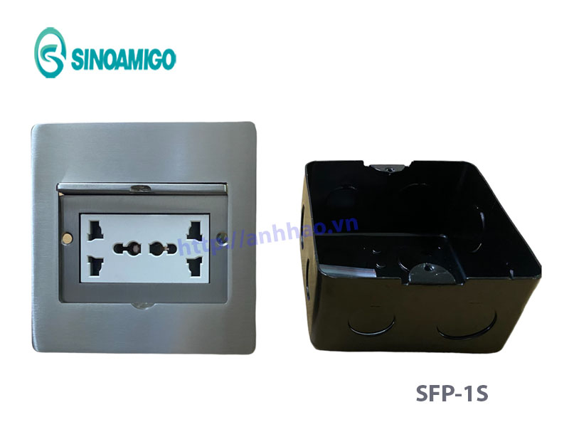 Hộp ổ cắm âm sàn nắp trượt Sinoamigo SFP-1S màu bạc. Thiết kế nắp trượt, chất liệu thép không gỉ chống oxy hóa - Hàng chính hãng