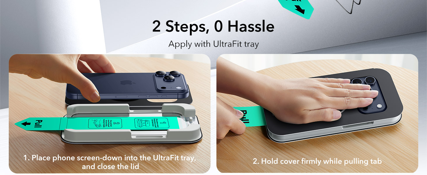 UltraFit in a Flash: bao gồm bộ dụng cụ vệ sinh và khay UltraFit để dán miếng bảo vệ màn hình (đọc hướng dẫn trước khi sử dụng), giúp dán nhanh chóng, dễ dàng và không tạo bọt khí mỗi lần