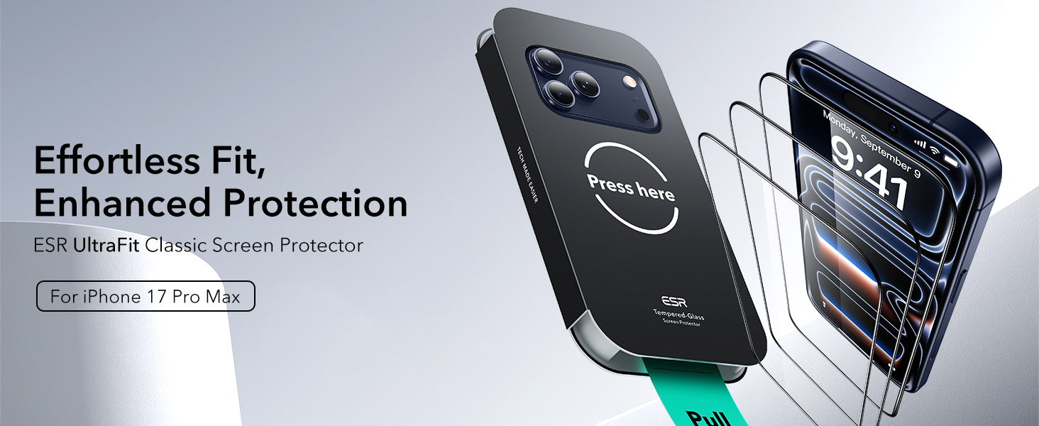 Kính Cường Lực ESR cho iPhone Air / iPhone 17 / iPhone 17 Pro / iPhone 17 Pro Max ESR UltraFit Classic Screen Protector - Hàng Chính Hãng