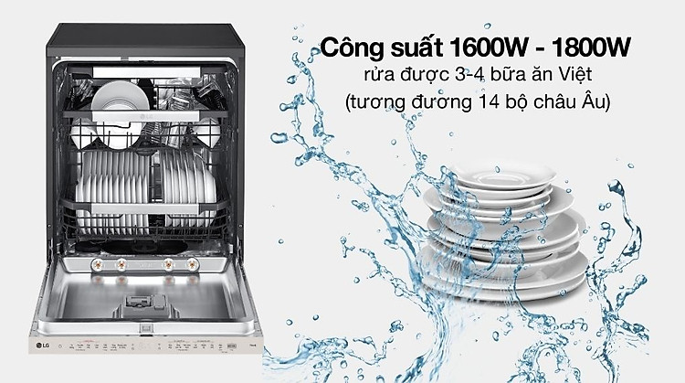- Máy rửa chén có công suất hoạt động ổn định từ 1600W - 1800W, cho phép bạn rửa được số lượng chén bát dùng cho 3 - 4 bữa ăn Việt (tương đương khoảng 14 bộ châu Âu).