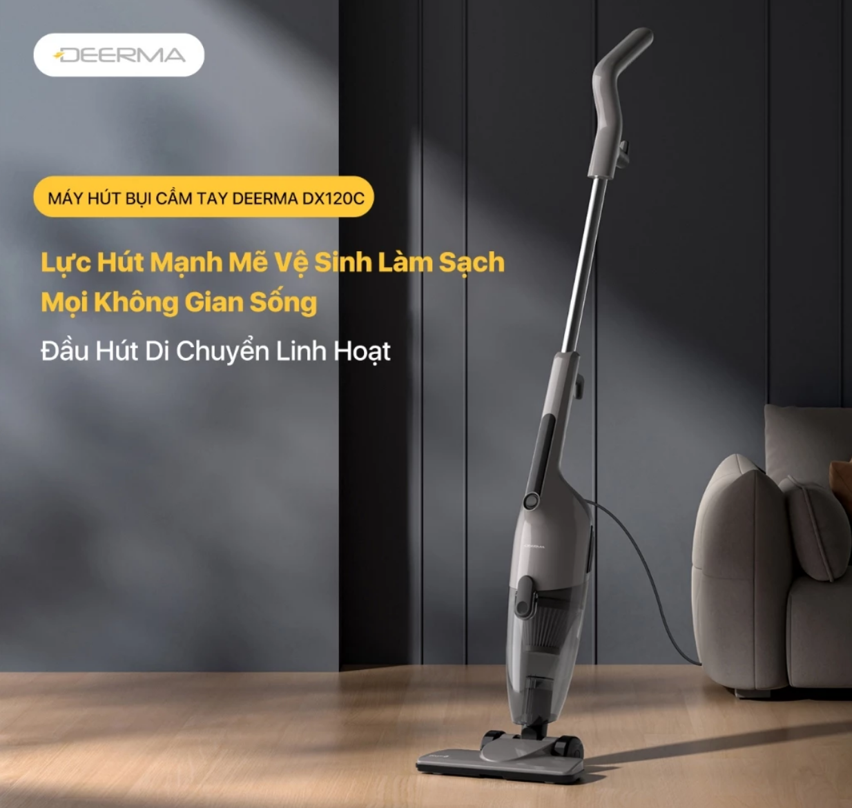 Máy hút bụi Deerma DX120c lực hút 16Kpa, Công suất 600W động cơ không chổi than {New 2025}