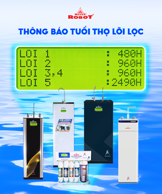 - Các sản phẩm máy lọc nước ROBOT đều sở hữu màn hình LCD sắc nét, hiển thị chi tiết các thông số TDS – chất lượng nước trước & sau lọc, tuổi thọ lõi lọc 24/24… để mọi người đều dễ dàng theo dõi hoạt động máy, chất lượng nước uống thông qua màn hình LCD, loại trừ mọi rủi ro, mang đến sự an toàn tuyệt đối khi sử dụng.