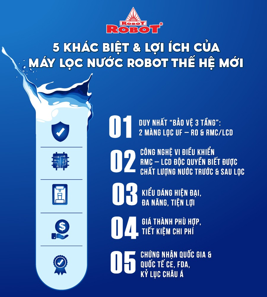 Với công nghệ “Bảo vệ 3 tầng”, máy lọc nước ROBOT được các chuyên gia đánh giá là sản phẩm bảo vệ tuyệt đối an toàn cho sức khỏe