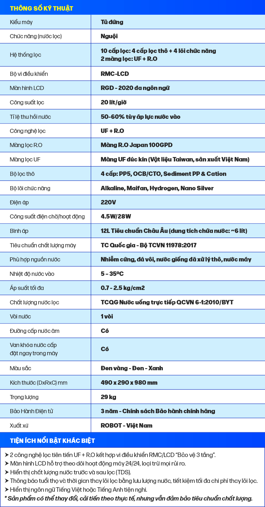 Với công nghệ “Bảo vệ 3 tầng”, máy lọc nước ROBOT được các chuyên gia đánh giá là sản phẩm bảo vệ tuyệt đối an toàn cho sức khỏe
