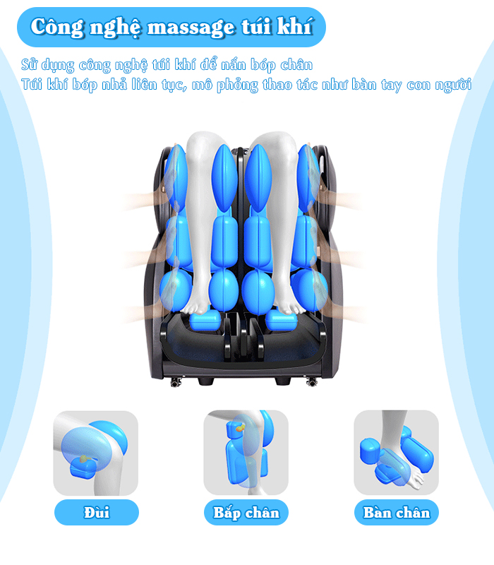 - Chế độ massage bắp chân và đùi:Matxa tập trung vào vùng bắp chân và đùi.