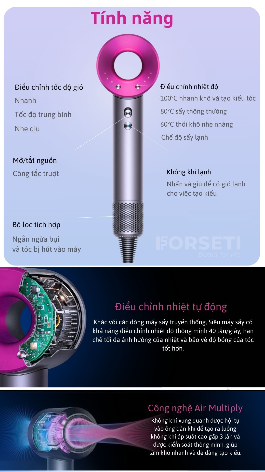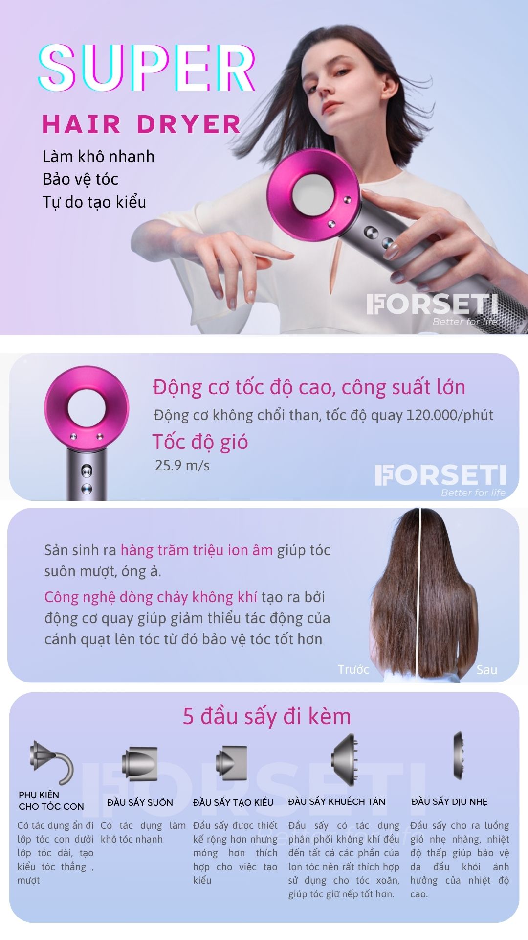 Máy sấy tóc Forseti FHD-688 Super Hair Dryer - Không cánh quạt - Ít tiếng ồn - Sấy nóng lạnh ion - Tạo kiểu nhanh - Hàng chính hãng