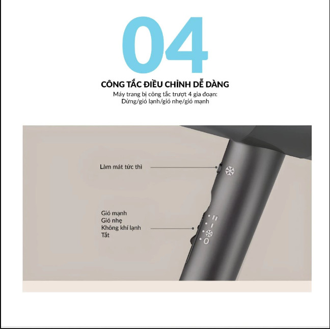 - Chế độ gió lạnh giúp giữ nếp tóc và bảo vệ mái tóc khỏi hư tổn