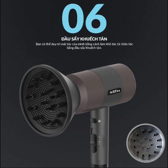 - Đầu sấy khuếch tán phù hợp với tóc xoăn tự nhiên, giúp giữ độ bồng bềnh và giảm hư tổn