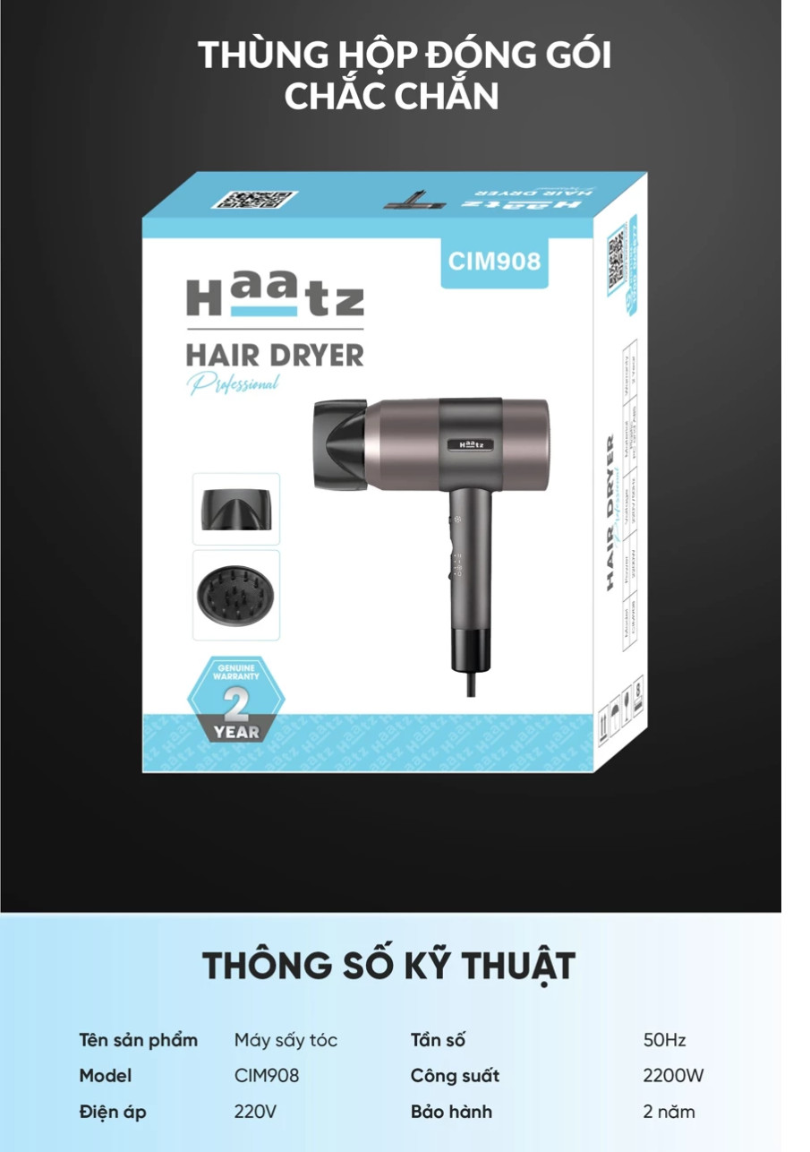- Máy Sấy Tóc HAATZ CIM908 Sấy Tóc Đa Năng 2 Chiều Nóng Lạnh, Hàng Chính Hãng Bảo Hành 2 Năm