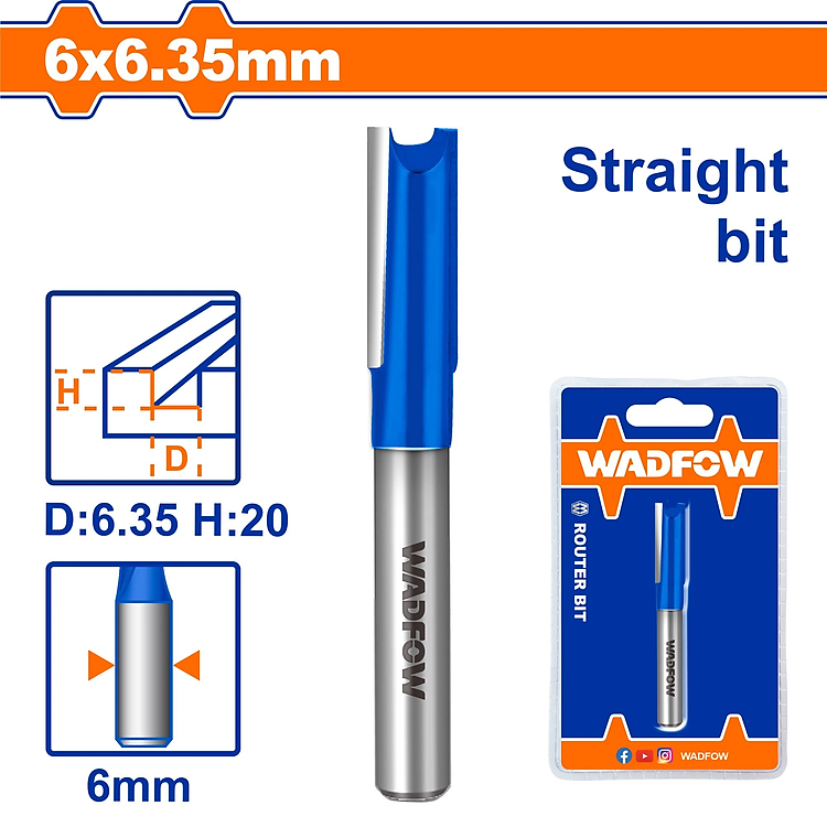 Mũi Phay Gỗ Thẳng 6x6.35mm WadFow WRG1401 được sử dụng trong các công việc phay gỗ để tạo ra các rãnh, uốn cong, hoặc thực hiện các chi tiết trang trí trên bề mặt gỗ.