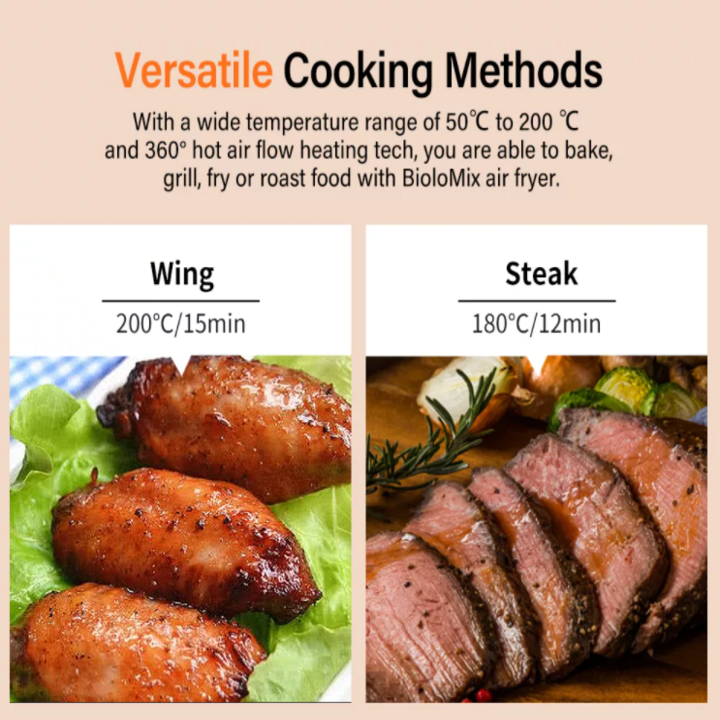 Bạn nghĩ gì về cách chiên truyền thống? ngon nhưng không tốt cho sức khỏe? Bây giờ, nồi chiên không khí BioloMix 7L mới sắp ra mắt. Nồi chiên không khí mạnh mẽ này sử dụng công nghệ tuần hoàn nhiệt 360 ° tiên tiến, có được món ăn giòn ngon và lành mạnh hơn với ít hoặc không cần dầu.