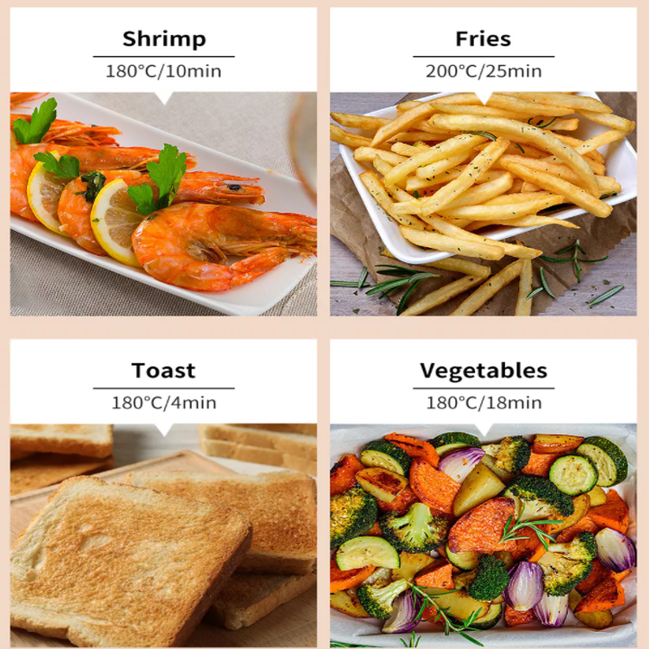không khí nóng luân chuyển 360 °, có thể cung cấp cho bạn món ăn giòn mà ít hoặc không cần dầu, để người yêu của bạn ăn ngon miệng hơn!