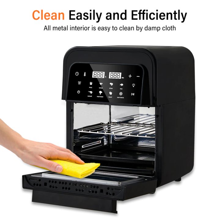 - Khỏe mạnh và tiện lợi: Nội thất của nồi chiên không khí này được làm bằng thép không gỉ chất lượng cao, cho phép bạn tận hưởng trải nghiệm nấu ăn và vệ sinh lành mạnh. Ngoài ra, bạn có thể bật đèn và ngắm nhìn bữa ăn qua ô cửa kính trong suốt, không lo nấu quá chín nữa.