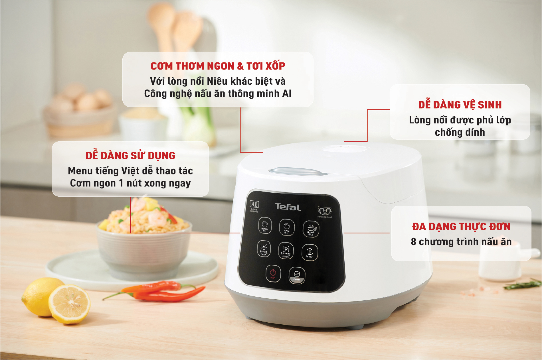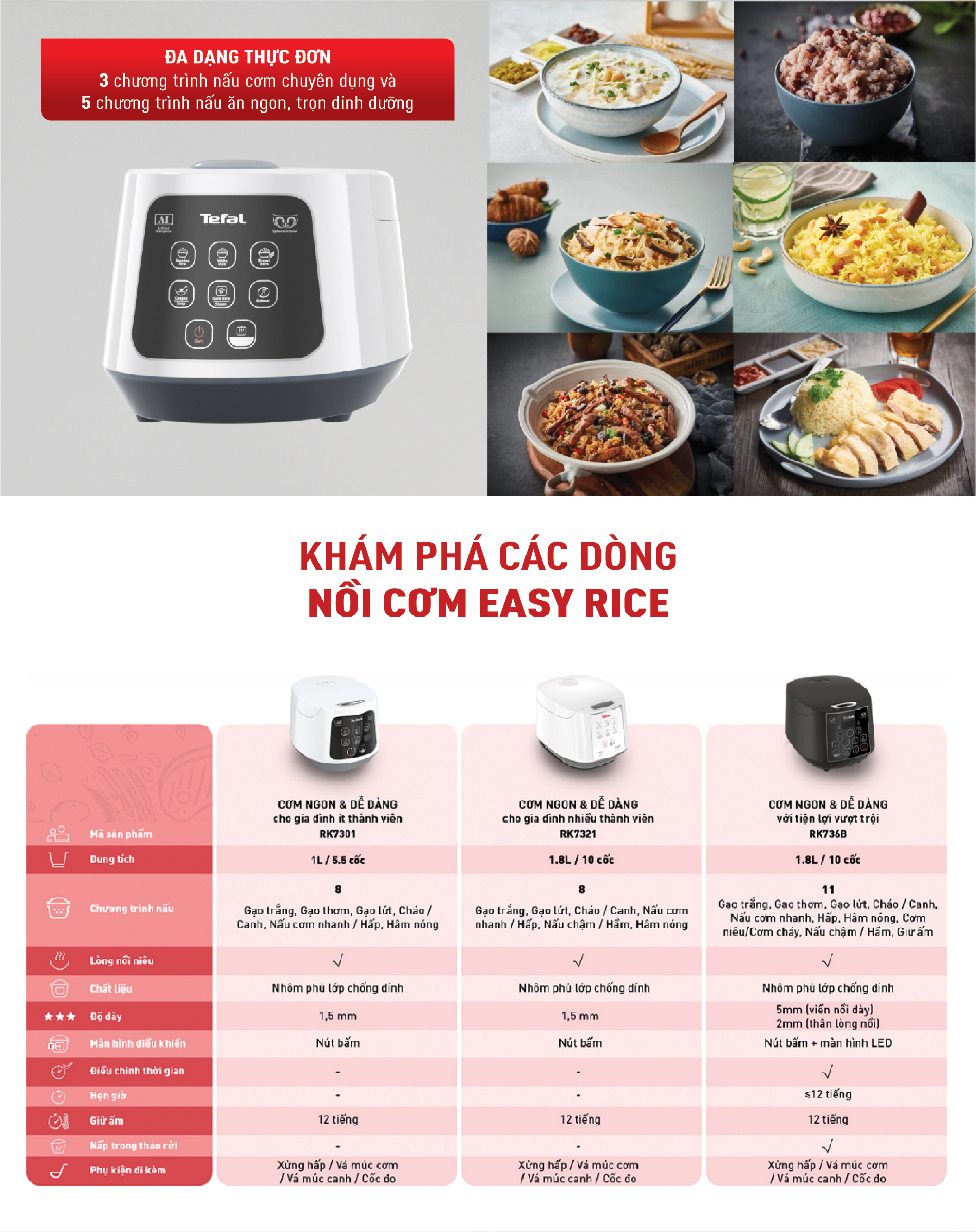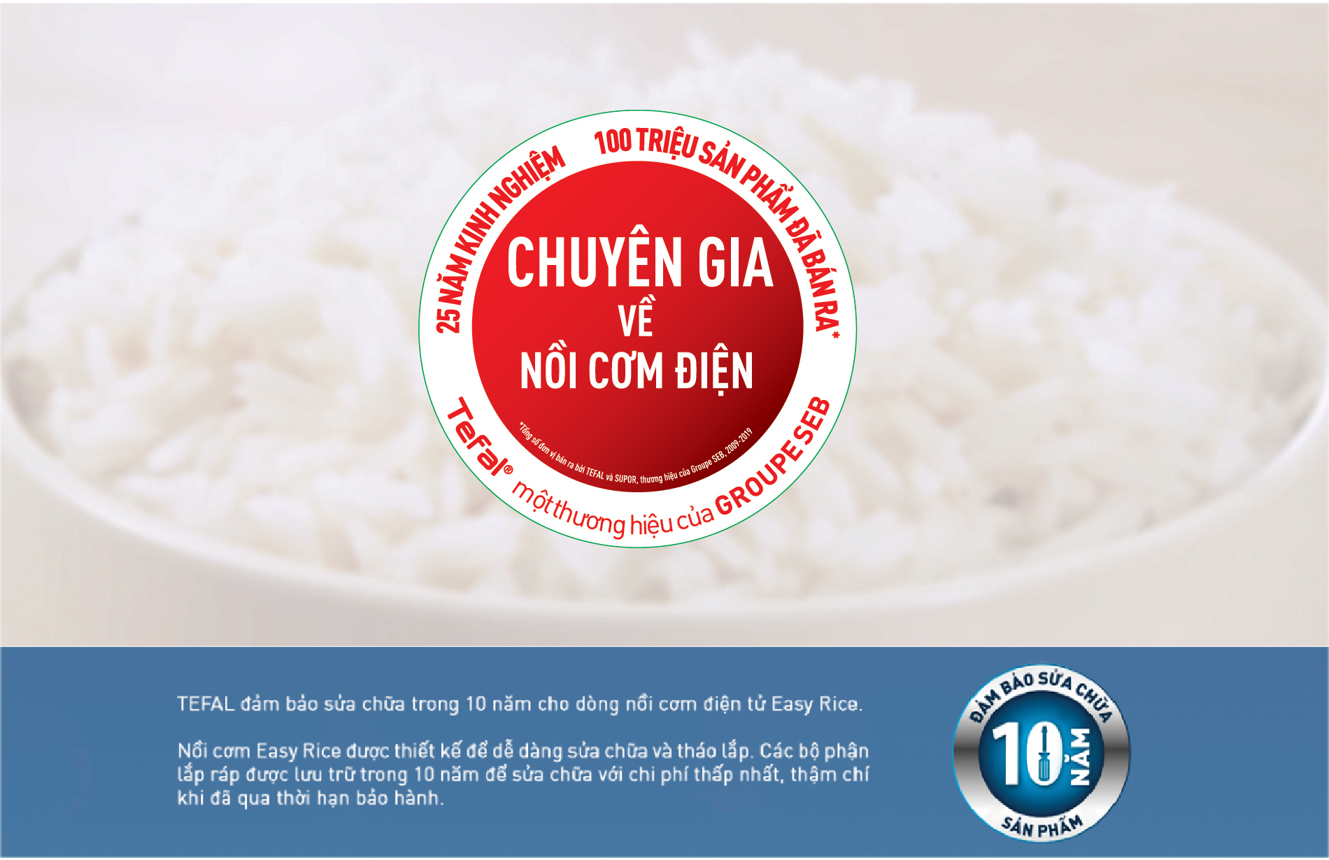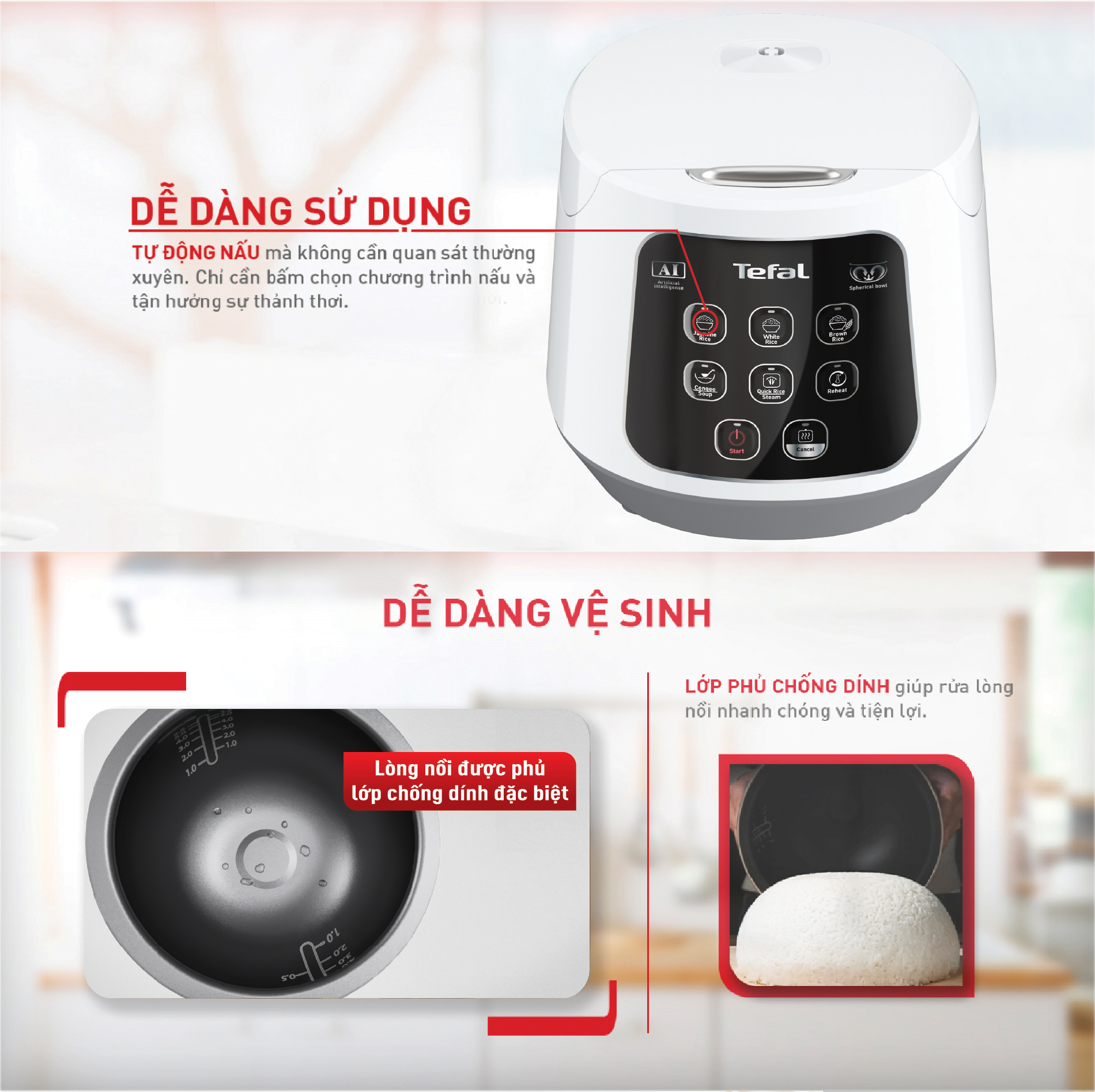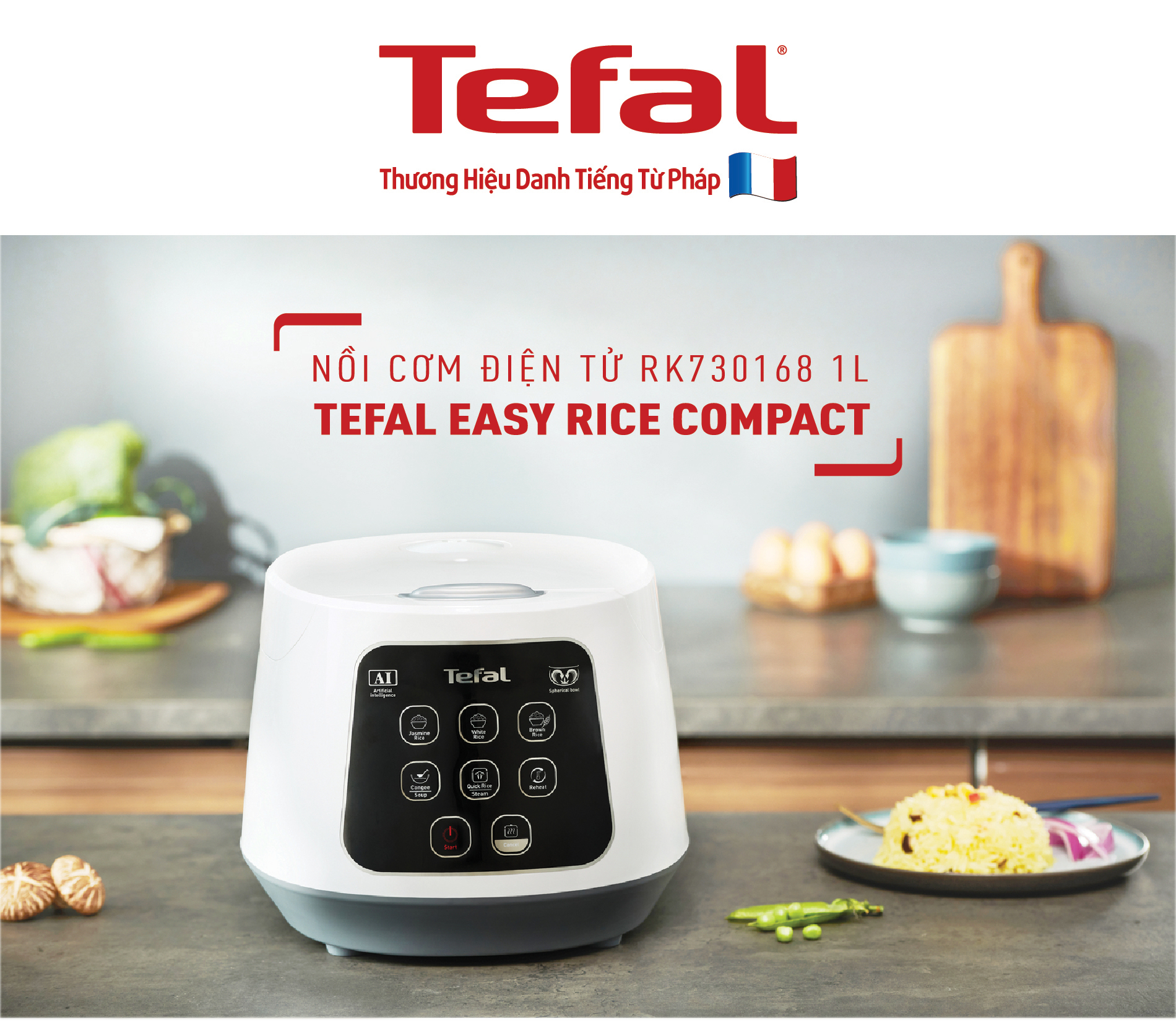 Nồi cơm điện Tefal Easy Rice Compact RK730168 - Dung tích 1L - Công suất 600W - Dễ dàng sử dụng với 1 nút nhấn - Công nghệ điện tử Fuzzy Heating - Hàng chính hãng