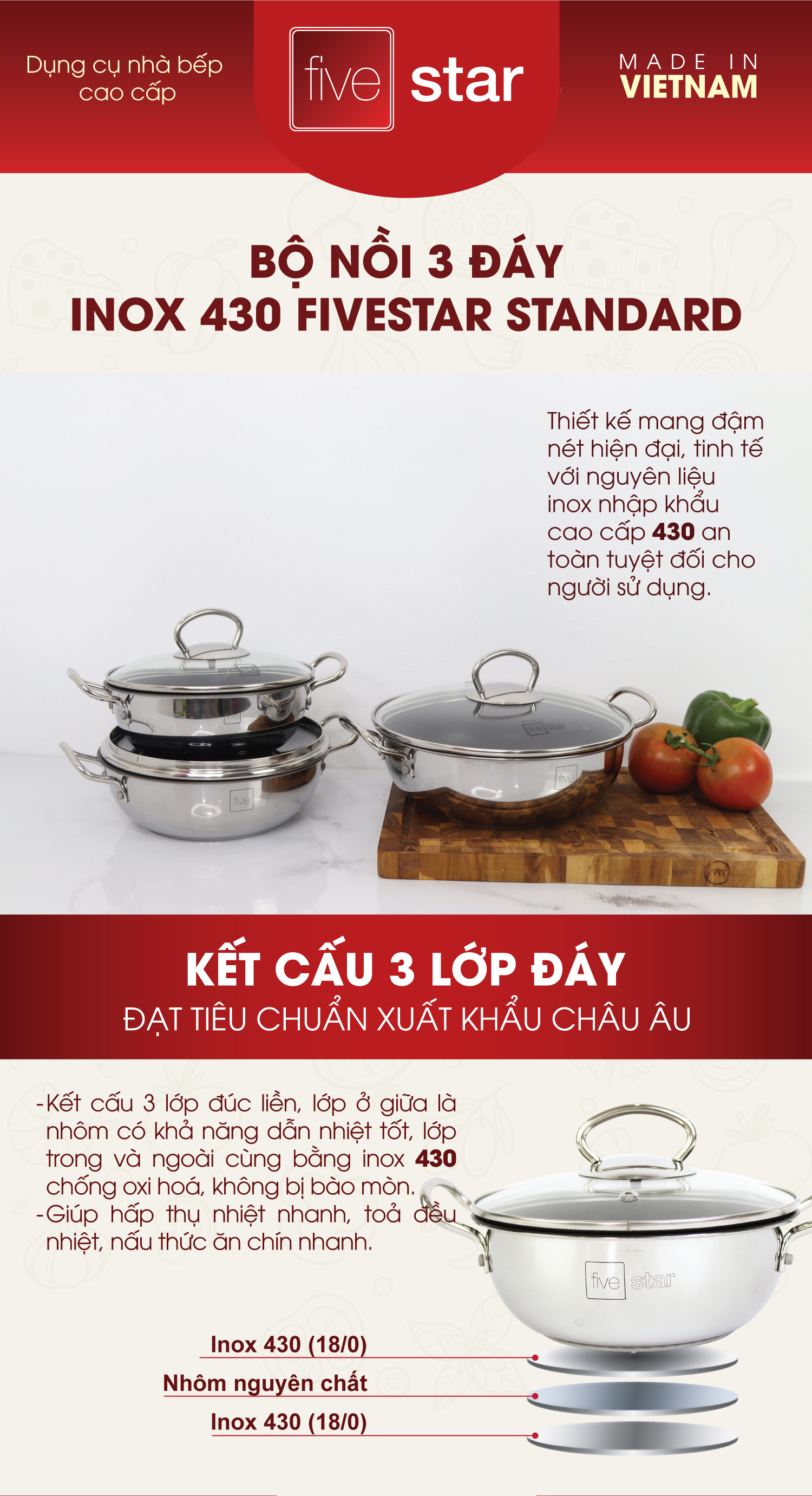 Nồi Kho Cá 3 Đáy Chống Dính 20cm Fivestar ( tặng 2 vá canh)