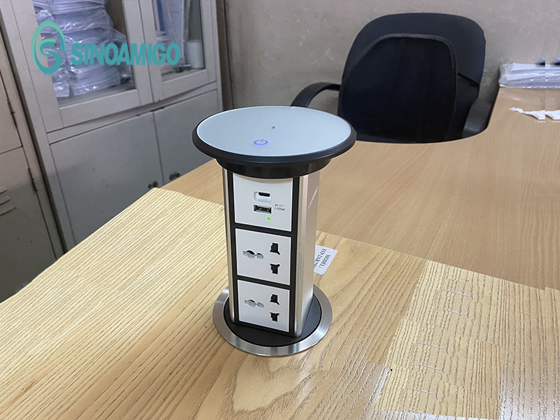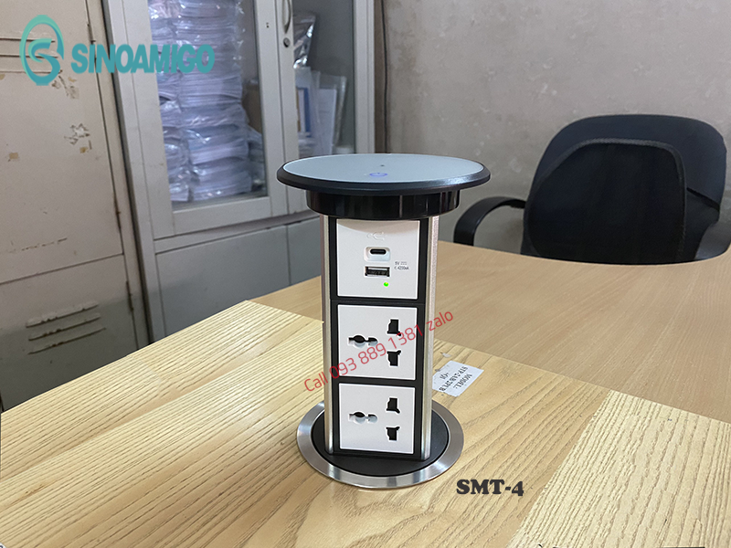 - Ổ điện âm bàn đảo bếp hình trụ Sinoamigo SMT-4, nâng hạ tự động, tích hợp sạc không dây - Hàng nhập khẩu chính hãng