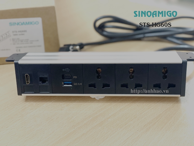 - Ổ cắm âm bàn Sinoamigo STS-HG60S với thiết kế đơn giản nhưng vô cùng tinh tế, dùng lắp âm bàn làm việc hoặc lắp dưới bàn cho văn phòng, phòng họp, trường học, phòng hội nghị