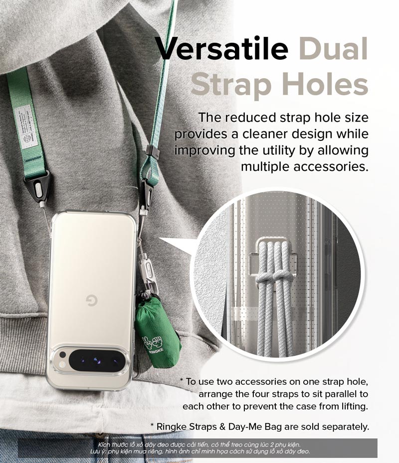 - Kích thước lỗ xỏ dây đeo cải tiến cho phép treo (móc) được 2 phụ kiện cùng lúc. Lưu ý: dây đeo được bán riêng. Hình ảnh chỉ minh họa cách sử dụng sản phẩm.