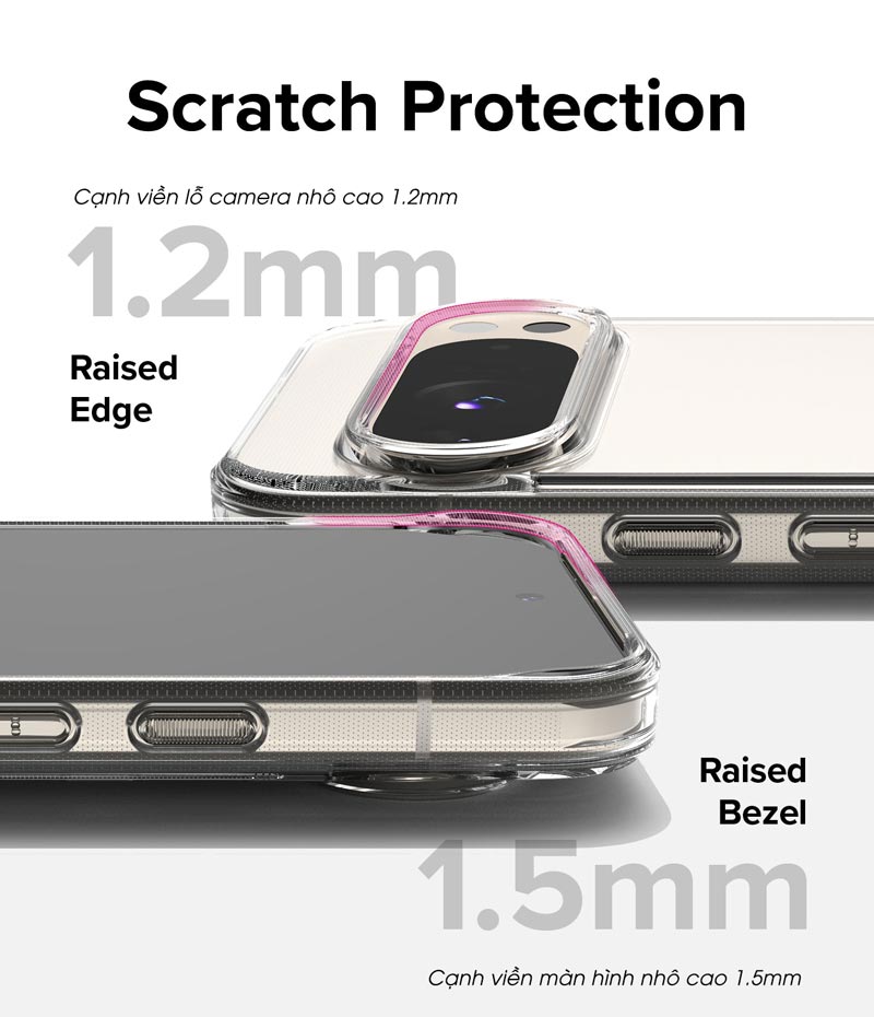 - Thiết kế cạnh viền camera nhô cao 1.2mm và thiết kế cạnh viền màn hình nhô cao 1.5mm giúp chống trầy.