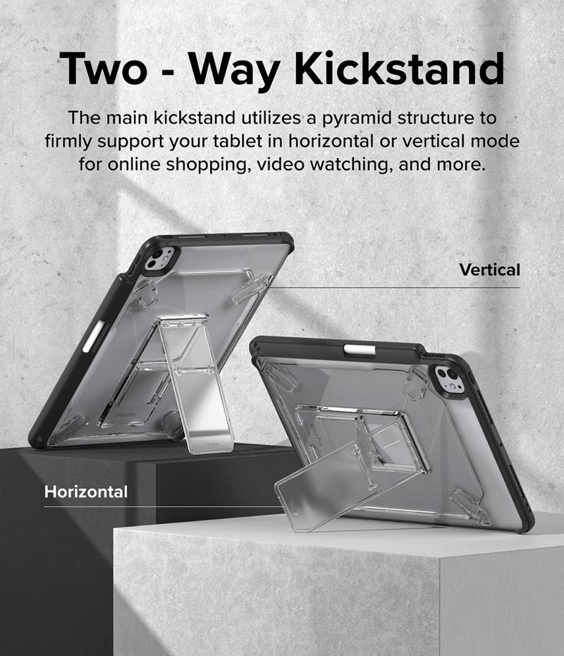 - Ốp lưng Ringke Fusion Sketch Stand thiết kế có chân dựng nhỏ 4 góc và chân dựng lớn giữa ốp giúp bạn dễ dàng điều chỉnh 4 góc độ thoải mái khi sử dụng.