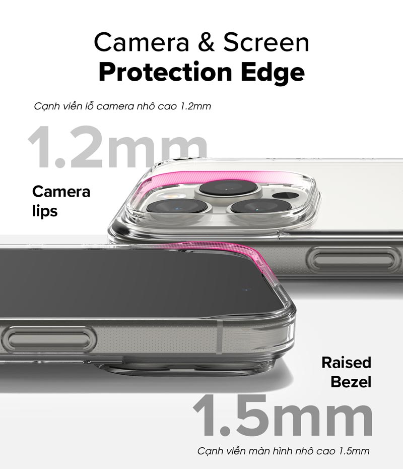 - Thiết kế cạnh viền màn hình nhô cao 1.5 mm và cạnh viền camera nhô cao 1.2 mm giúp chống trầy