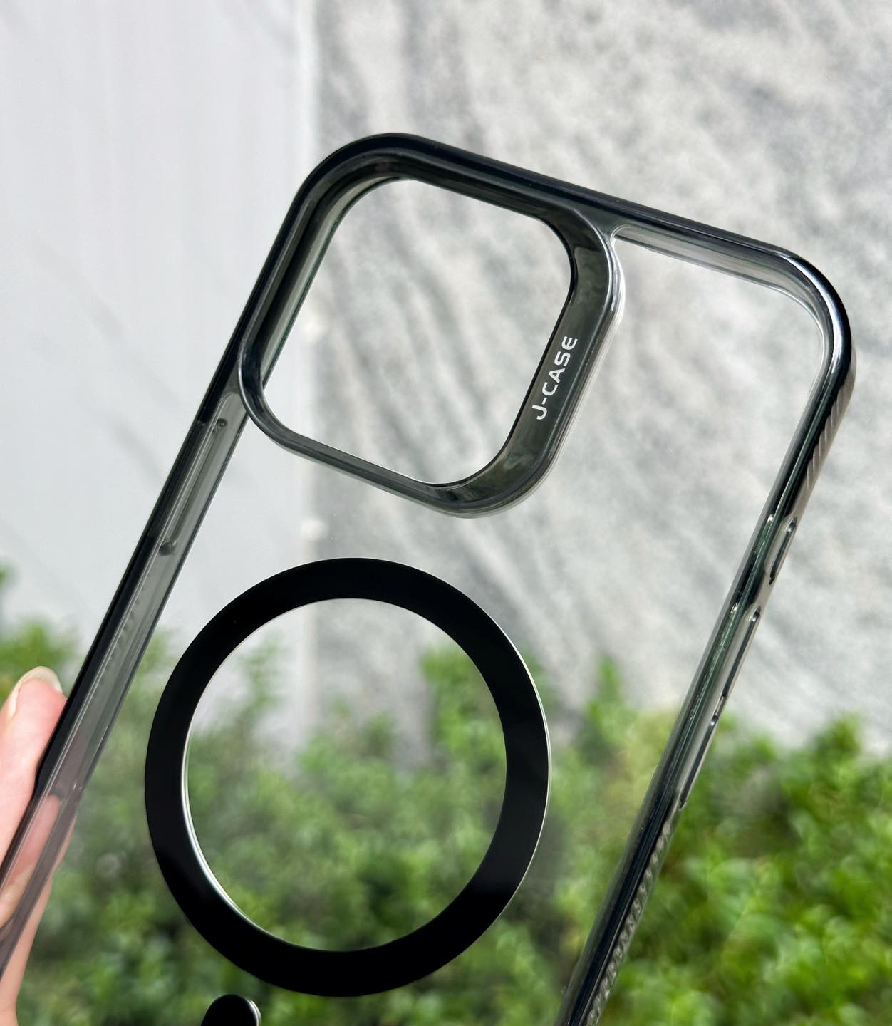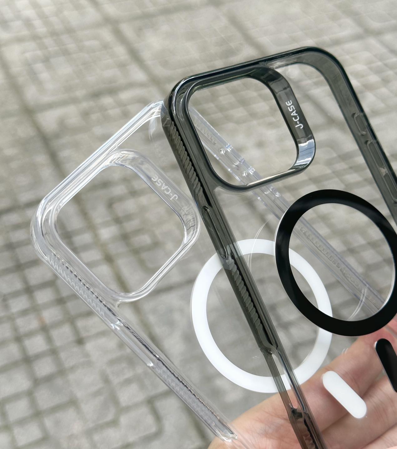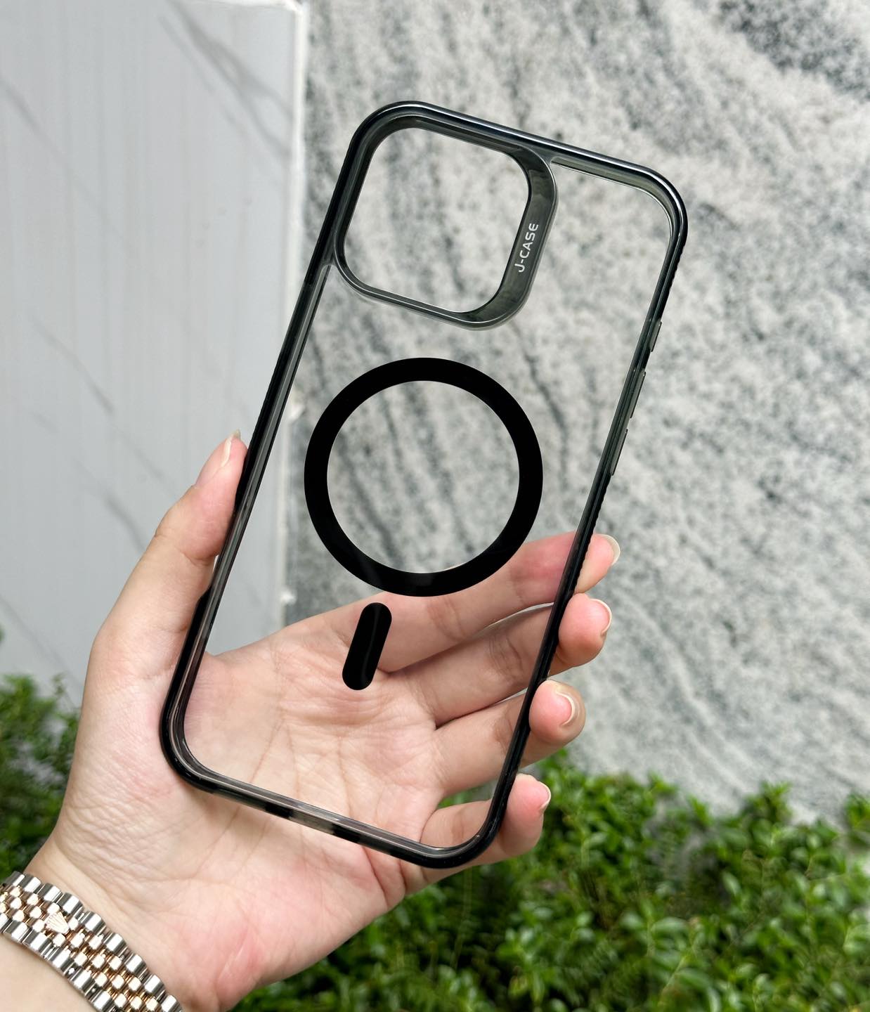 Ốp lưng cho iPhone 16 Pro Max, iPhone 16 Pro hiệu J-CASE hỗ trợ sạc không dây, lưng kính trong không ố, viền màu, mỏng gọn, chống sốc cao cấp