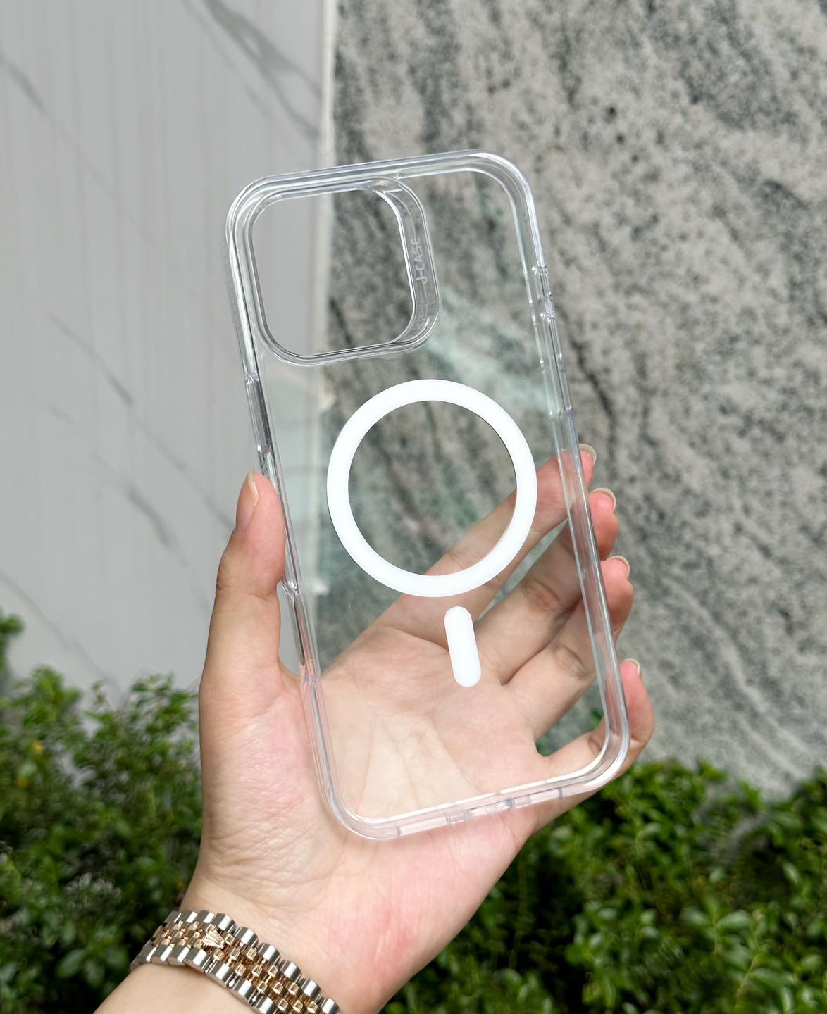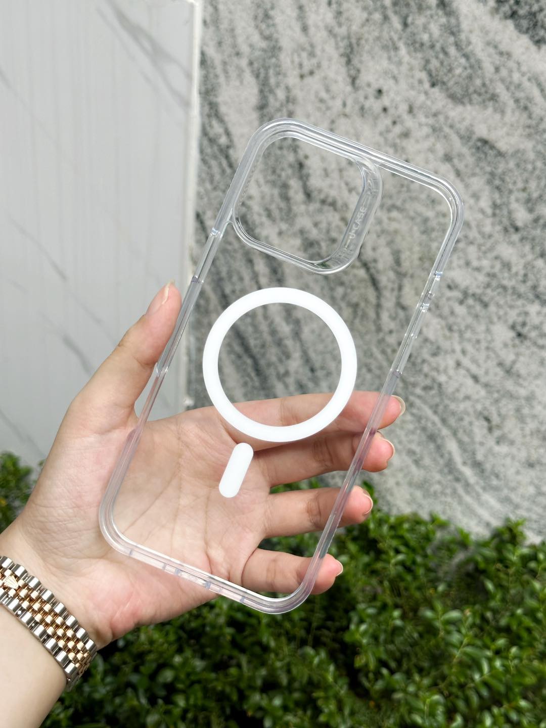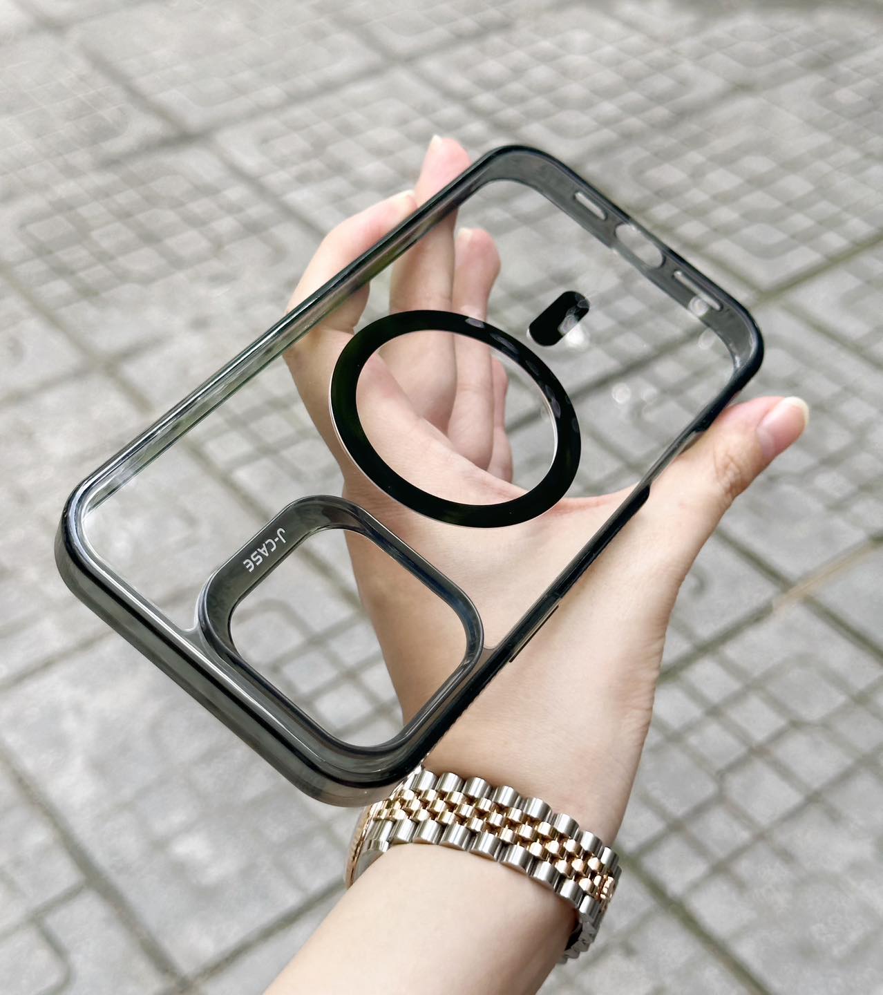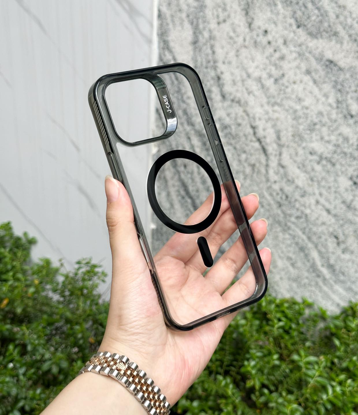 Ốp lưng cho iPhone 16 Pro Max, iPhone 16 Pro hiệu J-CASE hỗ trợ sạc không dây, lưng kính trong không ố, viền màu, mỏng gọn, chống sốc cao cấp