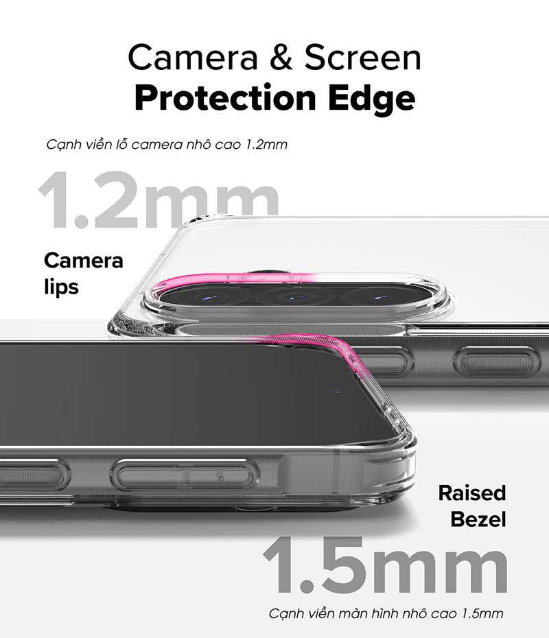 - Thiết kế cạnh viền camera nhô cao 1.2mm và thiết kế cạnh viền màn hình nhô cao 1.5mm giúp chống trầy.