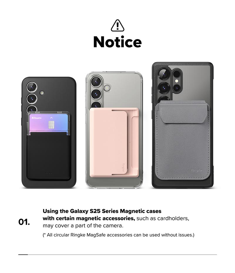 - Khi sử dụng ốp lưng với các phụ kiện từ tính như ngăn đựng thẻ, ví đựng thẻ…một phần của camera có thể bị che khuất vì lý do kích thước của thiết bị. Bạn chỉ cần tháo phụ kiện trước khi chụp ảnh và không ảnh hưởng đến tính năng của ốp lưng.