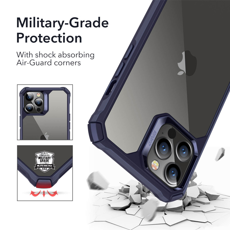 Ốp lưng iPhone 12/12 Pro ESR Air Armor Clear Hard Case đạt chuẩn (MIL-STD 810G 516.6) của quân đội Mỹ, chống sốc, phân tán lực tác động khi rơi rớt, đồng thời giúp bạn dễ dàng tháo/lắp ốp mà không gây trầy xước cho điện thoại.