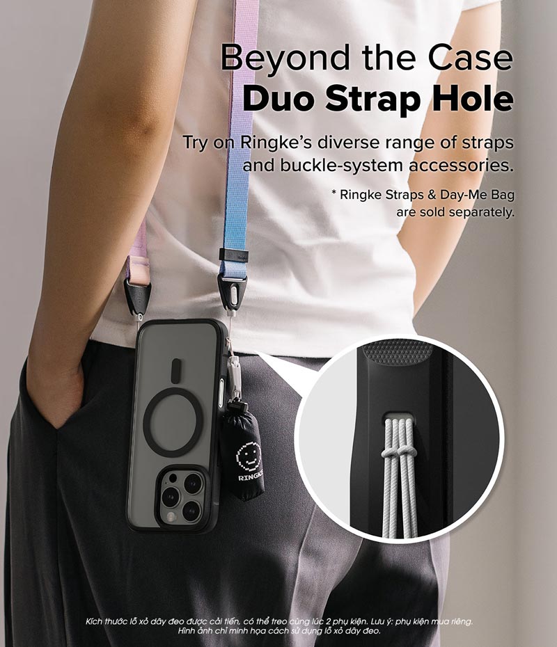 - Kích thước lỗ xỏ dây đeo cải tiến cho phép treo (móc) được 2 phụ kiện cùng lúc. Lưu ý: dây đeo được bán riêng. Hình ảnh chỉ minh họa cách sử dụng sản phẩm.
