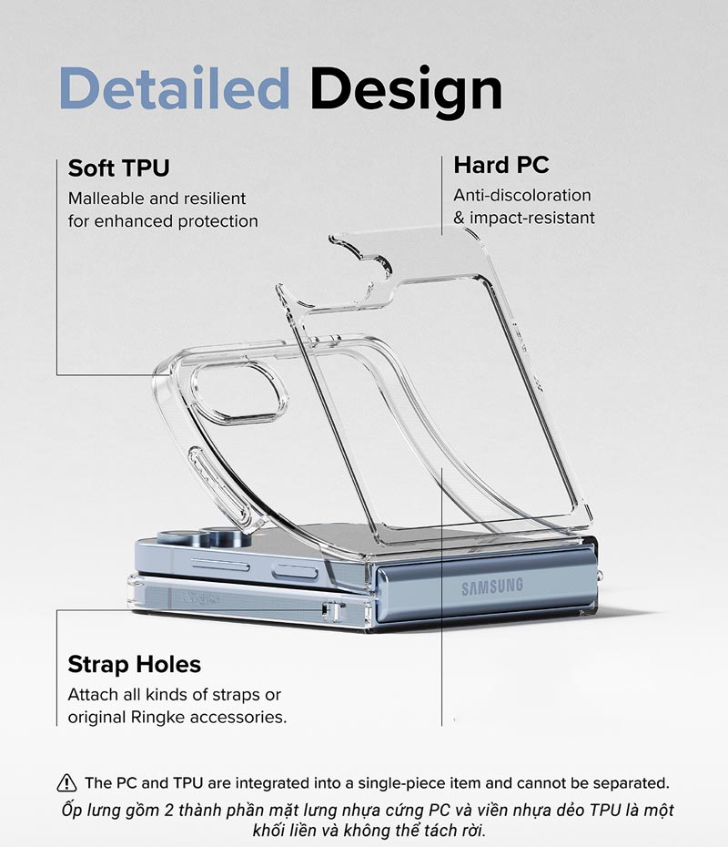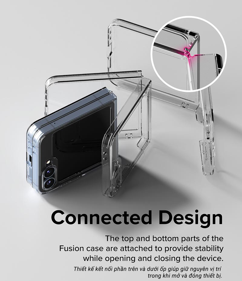 - Đặc biệt, dòng Fusion cho Galaxy Z Flip 6 có thiết kế kết nối phần trên và phần dưới ốp lưng, giúp giữ nguyên vị trí trong khi mở và đóng thiết bị.