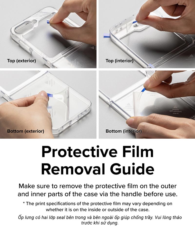 Ốp có hai lớp seal bên trong và bên ngoài, vui lòng tháo seal trước khi sử dụng.