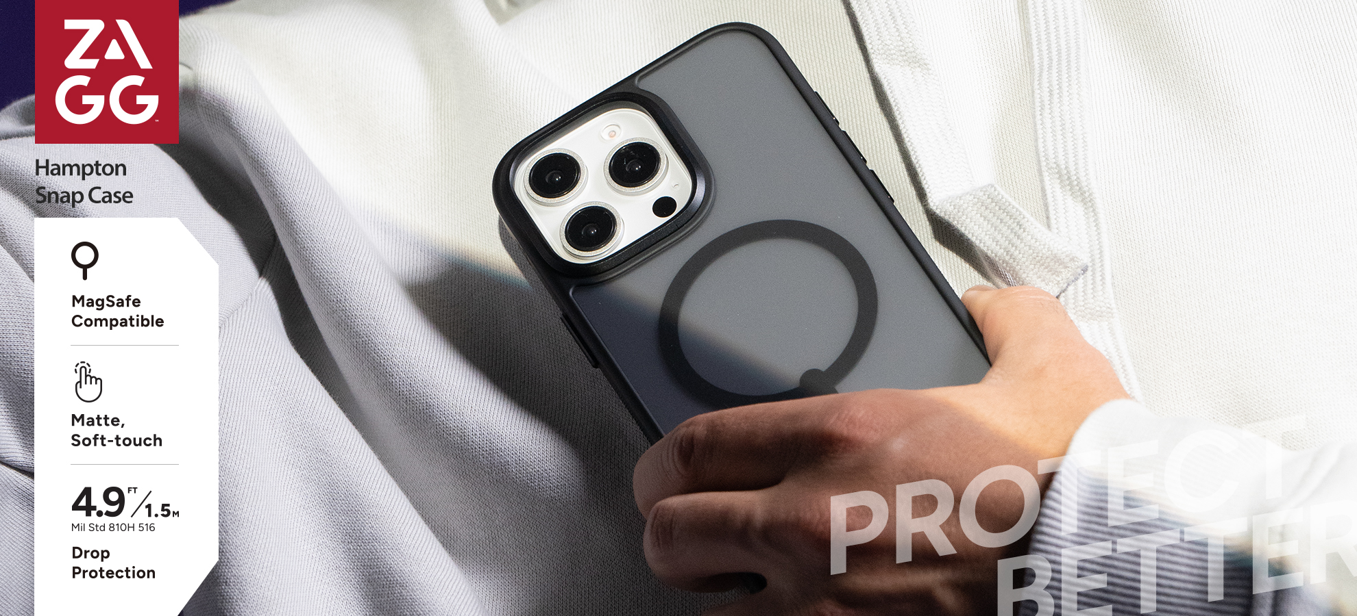 Sở dĩ ốp lưng ZAGG Santa Cruz Snap có khả năng bảo vệ điện thoại khỏi va đập đến 4m là nhờ vào vật liệu bảo vệ mới Graphene: một trong những vật liệu bền nhất Trái Đất với sức mạnh bảo vệ bền bỉ, cứng hơn kim cương, đàn hồi hơn cao su và bền hơn thép tới 200 lần. Có khả năng phân tán nhiệt lượng: Graphene là một trong những vật liệu nhân tạo dẫn điện tốt nhất trên thế giới. Những nhà cách tân hàng đầu trong ngành sử dụng Graphene: hàng không, hàng không vũ trụ, thể thao chuyên nghiệp…